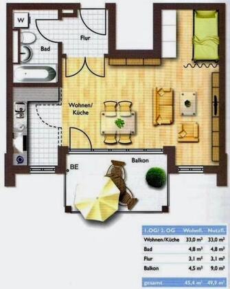Mehr zum Angebot provisionsfrei: helle 1,5-Zimmer-Wohnung mit TG Stellplatz: